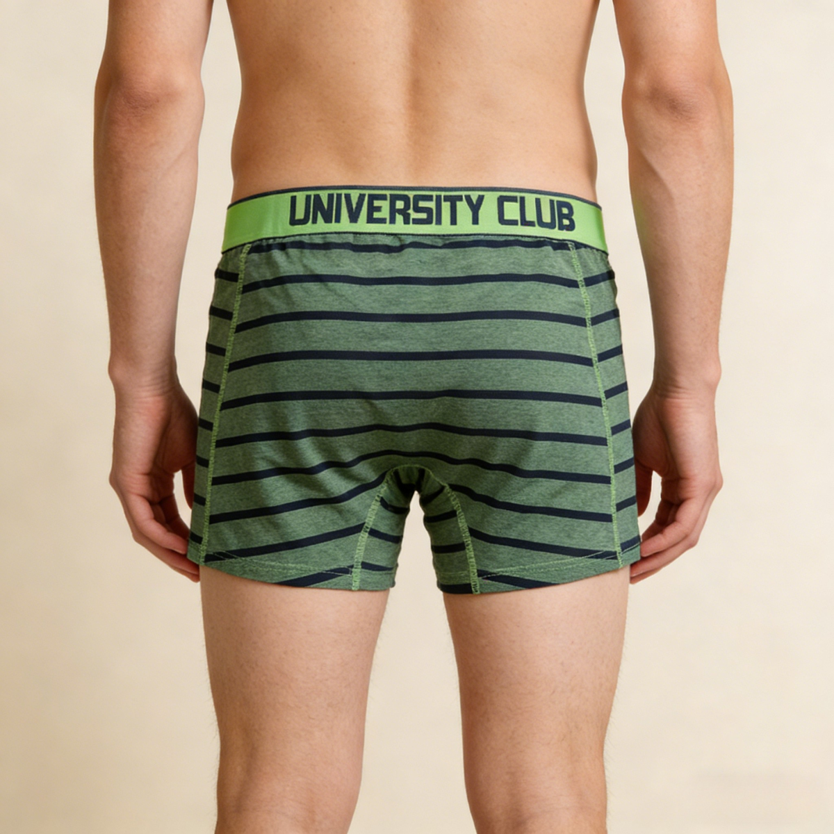 Introduction This men's striped boxer brief is designed for high-end private label collections that demand both classic style and modern performance. As a dedicated OEM manufacturer, we focus on delivering a garment that provides a superior fit through advanced fabric blending. The green and navy striped pattern offers a sophisticated aesthetic, making it a standout piece for any men's basics or athletic line.